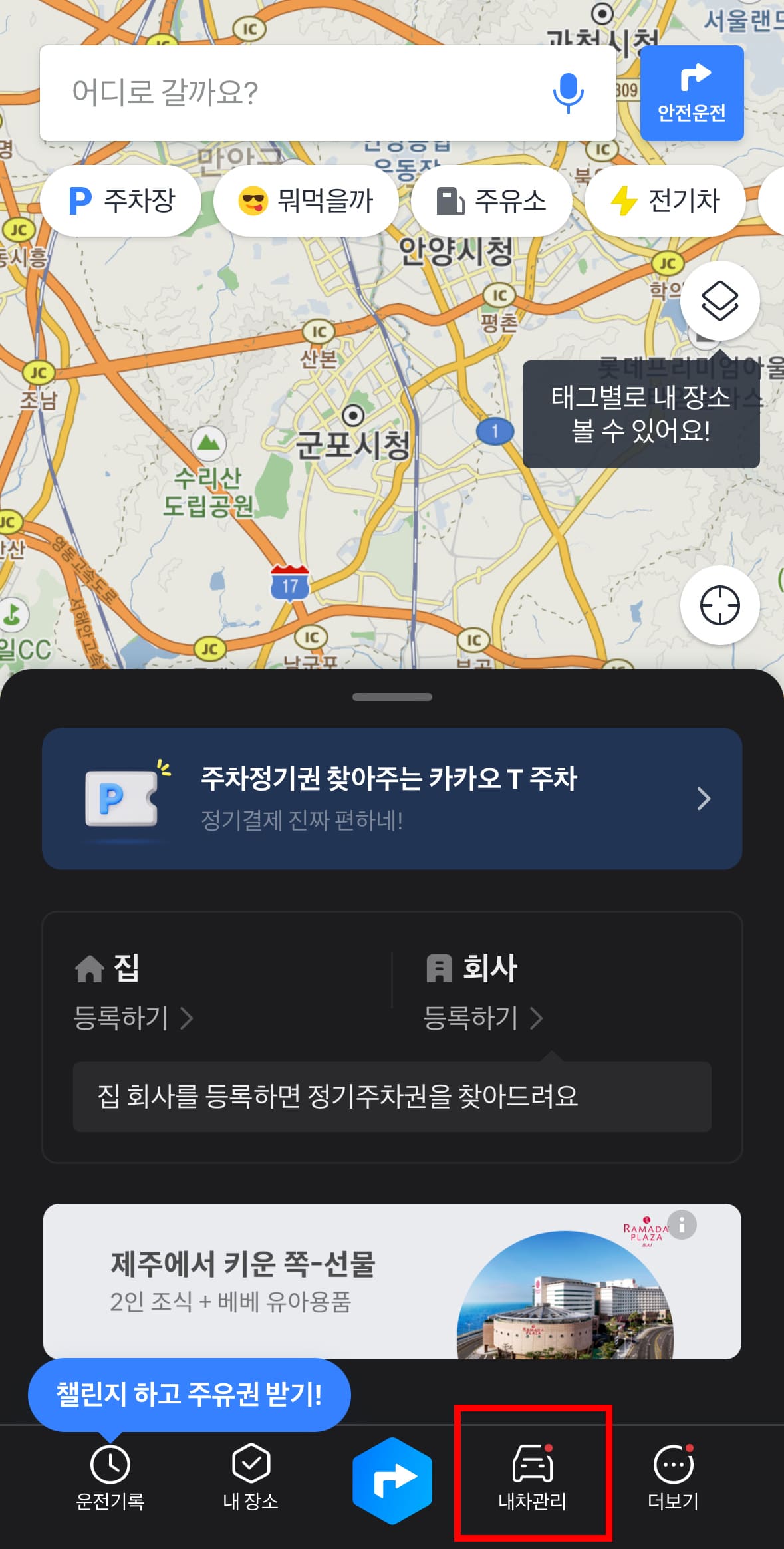 1. 카카오 네비 실행하여 하단에 "내차관리" 클릭