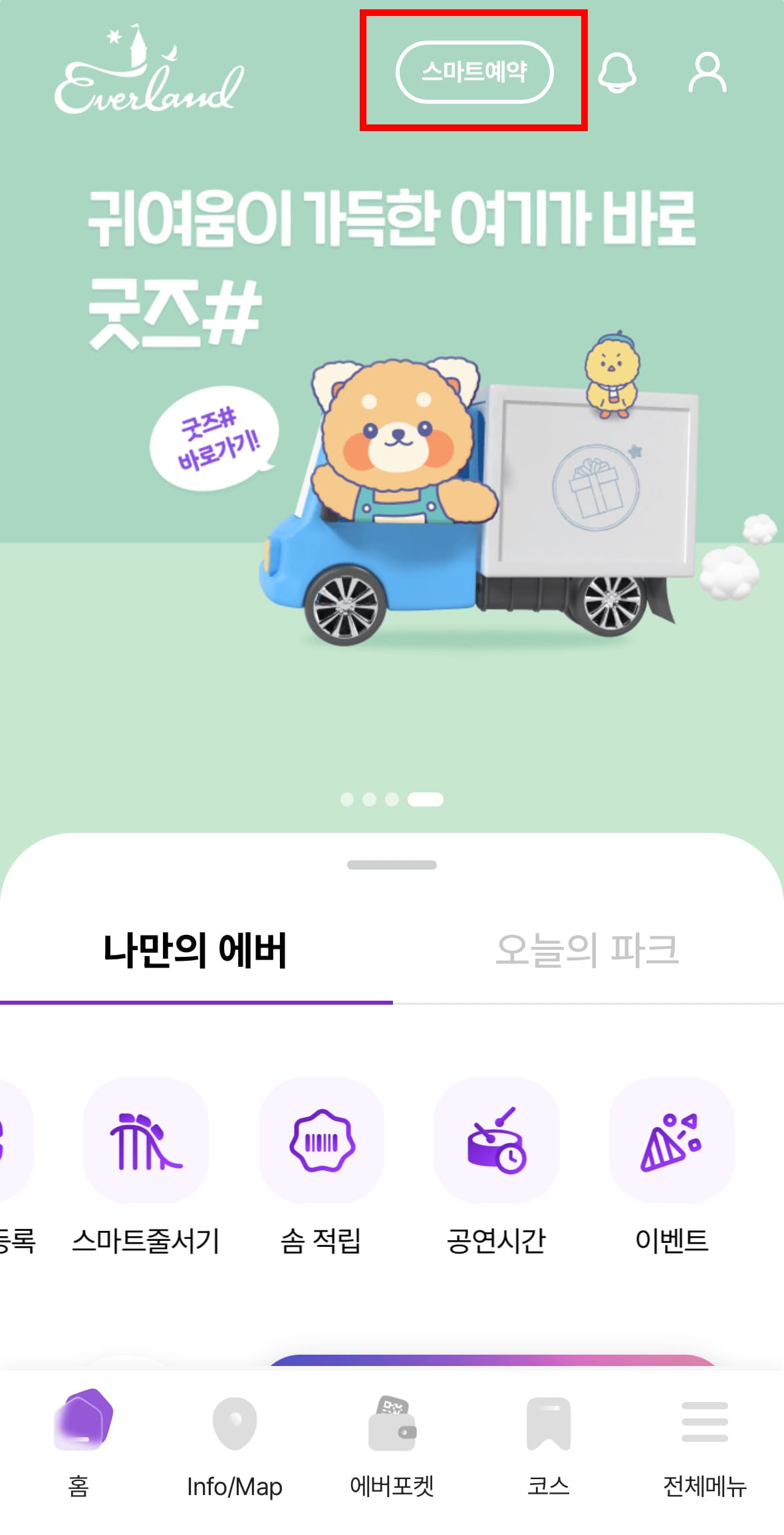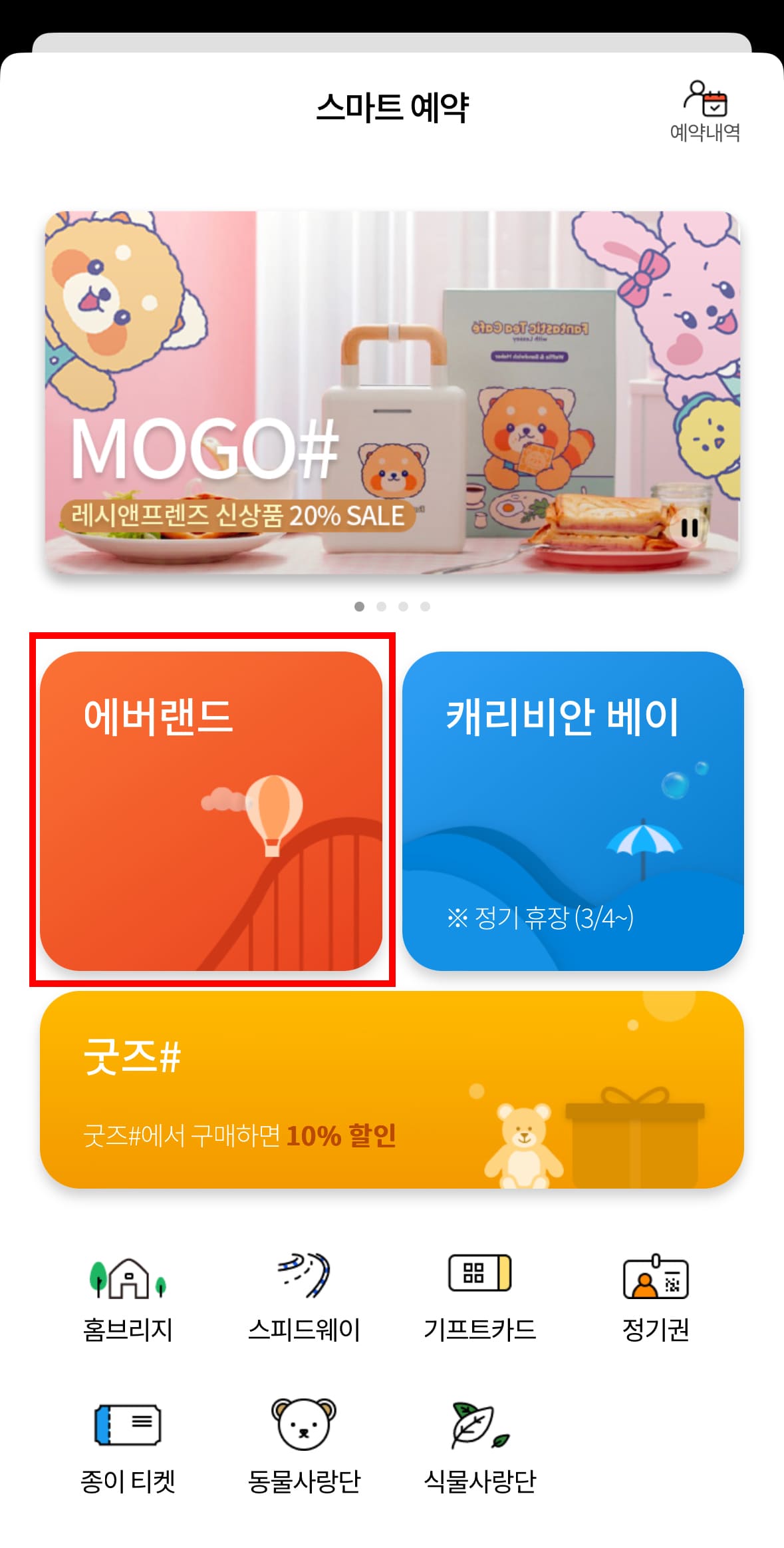1. 에버랜드 어플 실행 후 에버랜드 클릭