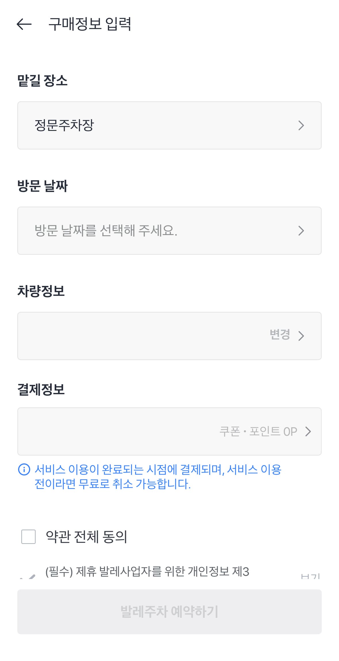 4. 발레 주차 (또는 발레 + 웨건대여) 선책
