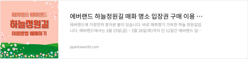 3) 함께보면 좋은 글 - 매화 명소 에버랜드 하늘길 정원 예약방법 및 꿀팁
